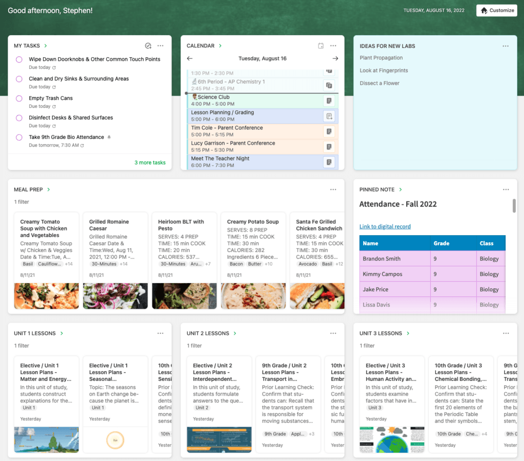 Evernote offers a number of ways to ensure that you see the right task at the right time.  Every teacher should Connect Evernote to Google Calendar.  You may be lucky, your lessons may already be available on just such a calendar. If not, it’s worth the time spent inputting the lessons yourself.