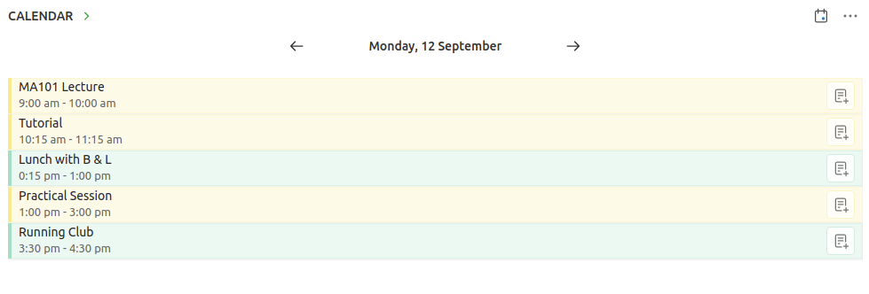 Evernote Home gives you your day on a page. Front and center should be your calendar. Your calendar will tell you where you need to be and when. Lectures, tutorials, practicals…