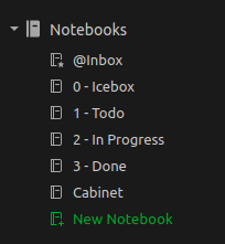 The system makes use of the fact that a note can only be in one notebook at a time. Notes can be Todo or In Progress, but never both at the same time.